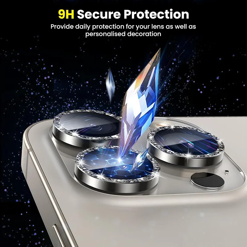 Original Stone Diamond Fancy Sapphire Glass Camera Lens Protector for iPhone 12 to 16 Pro Max – Premium 9H Tempered Glass, Anti-Scratch & Shockproof